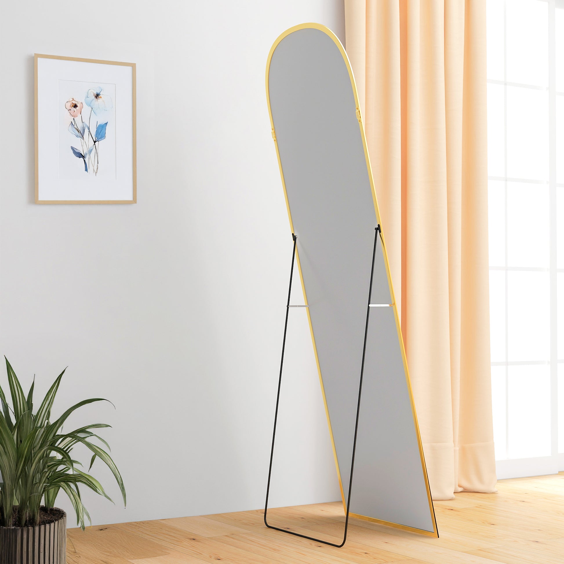 Add a touch of elegance to your space with this versatile arched full-length mirror featuring a sophisticated gold aluminum frame. Designed for flexibility, this mirror can be positioned in multiple ways to suit your needs while providing a complete reflection. The premium tempered glass and durable construction ensure both safety and longevity.