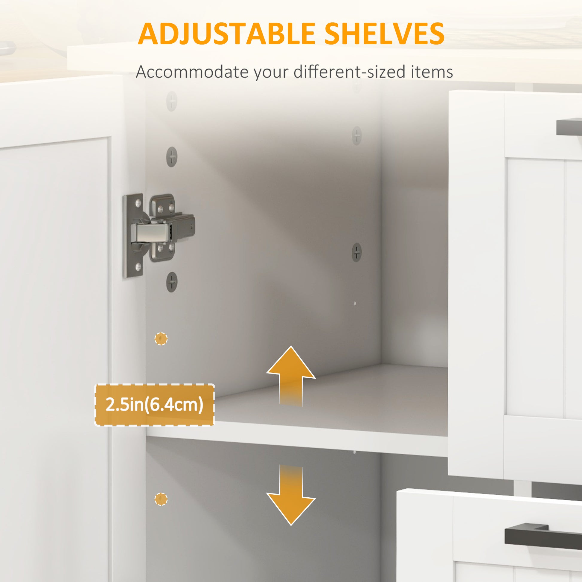 Comprehensive Storage System: Includes three easy-glide drawers and two storage cabinets with 3-level adjustable shelving to accommodate kitchenware of various sizes, from utensils to pots and pans.