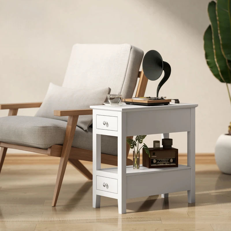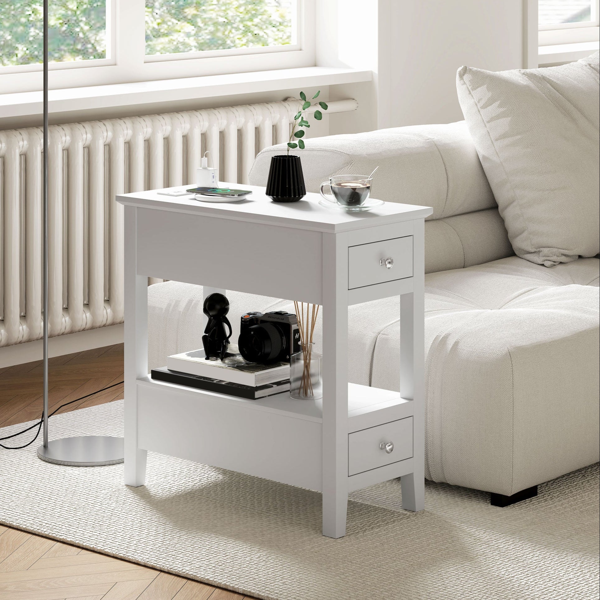 Narrow Side Table with Built-in Charging Station and USB Ports, White