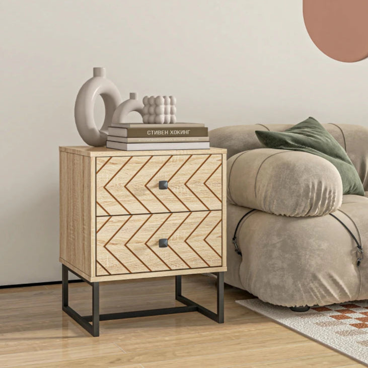 Modern Nightstand with Zig-Zag Design and 2 Drawers, Natural Wood