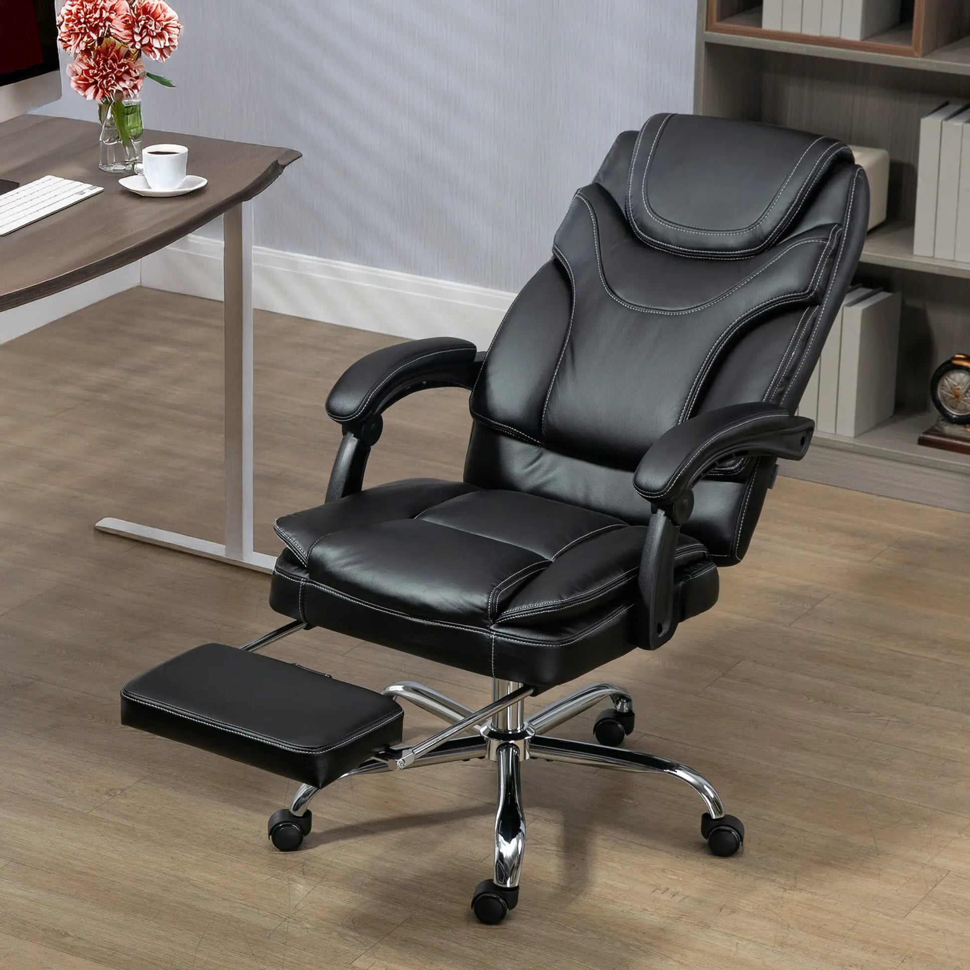6-Point Vibration Massage Office Chair with Heating and Footrest, Black