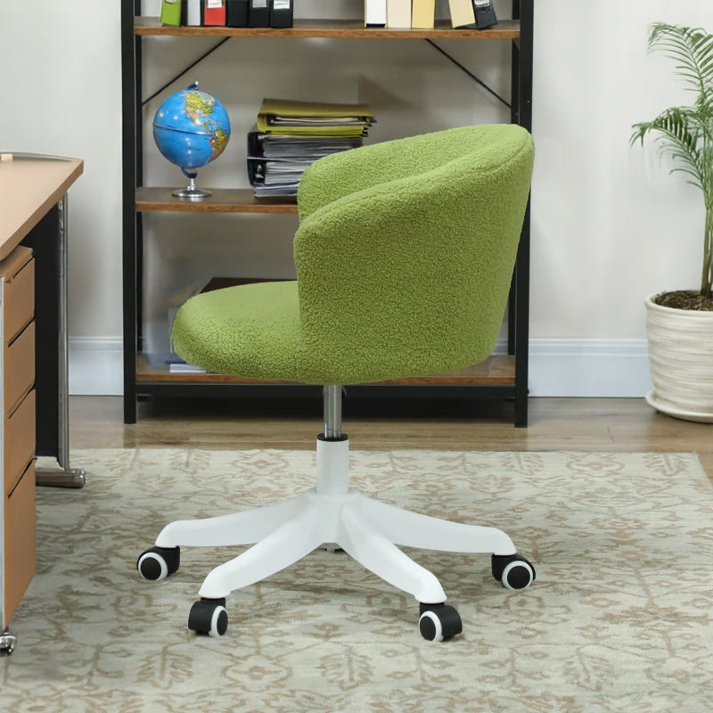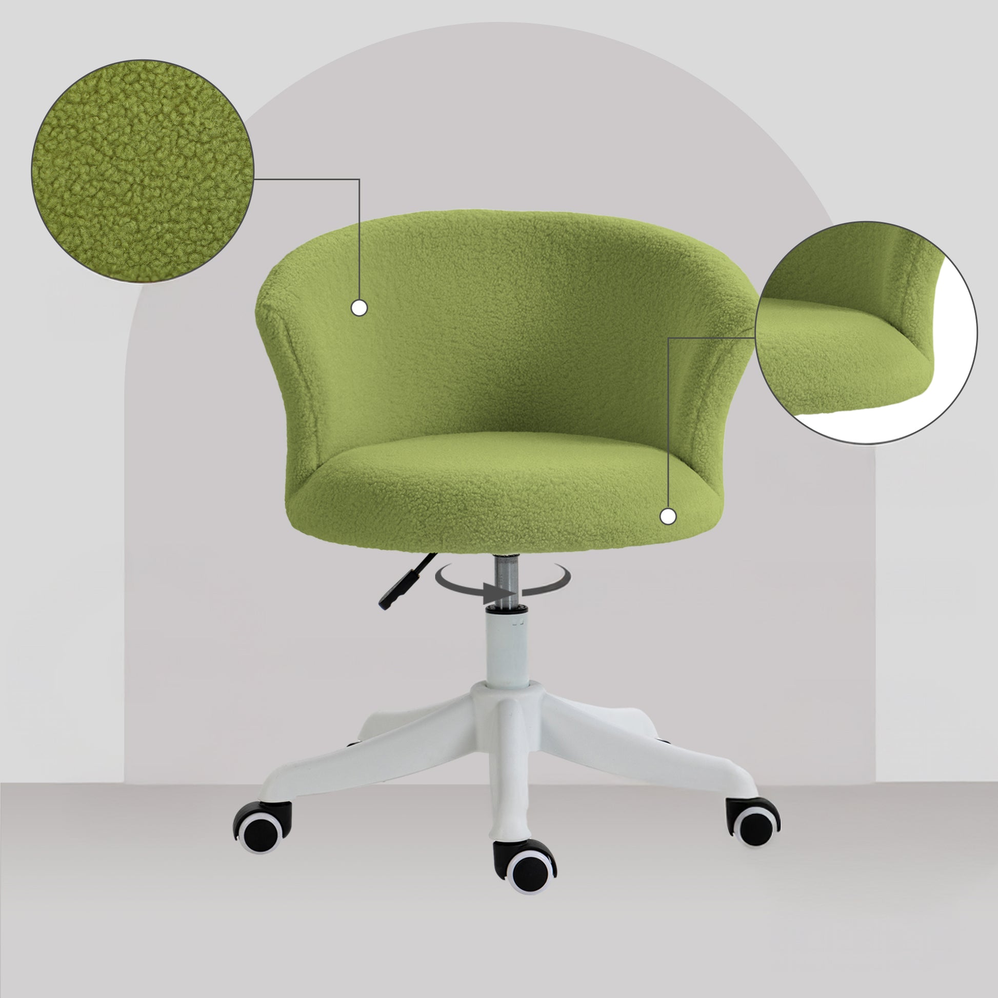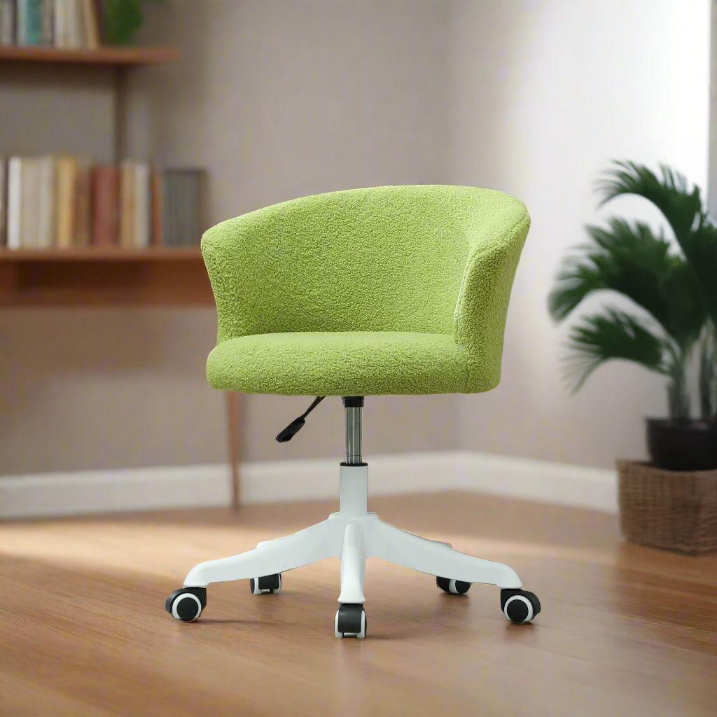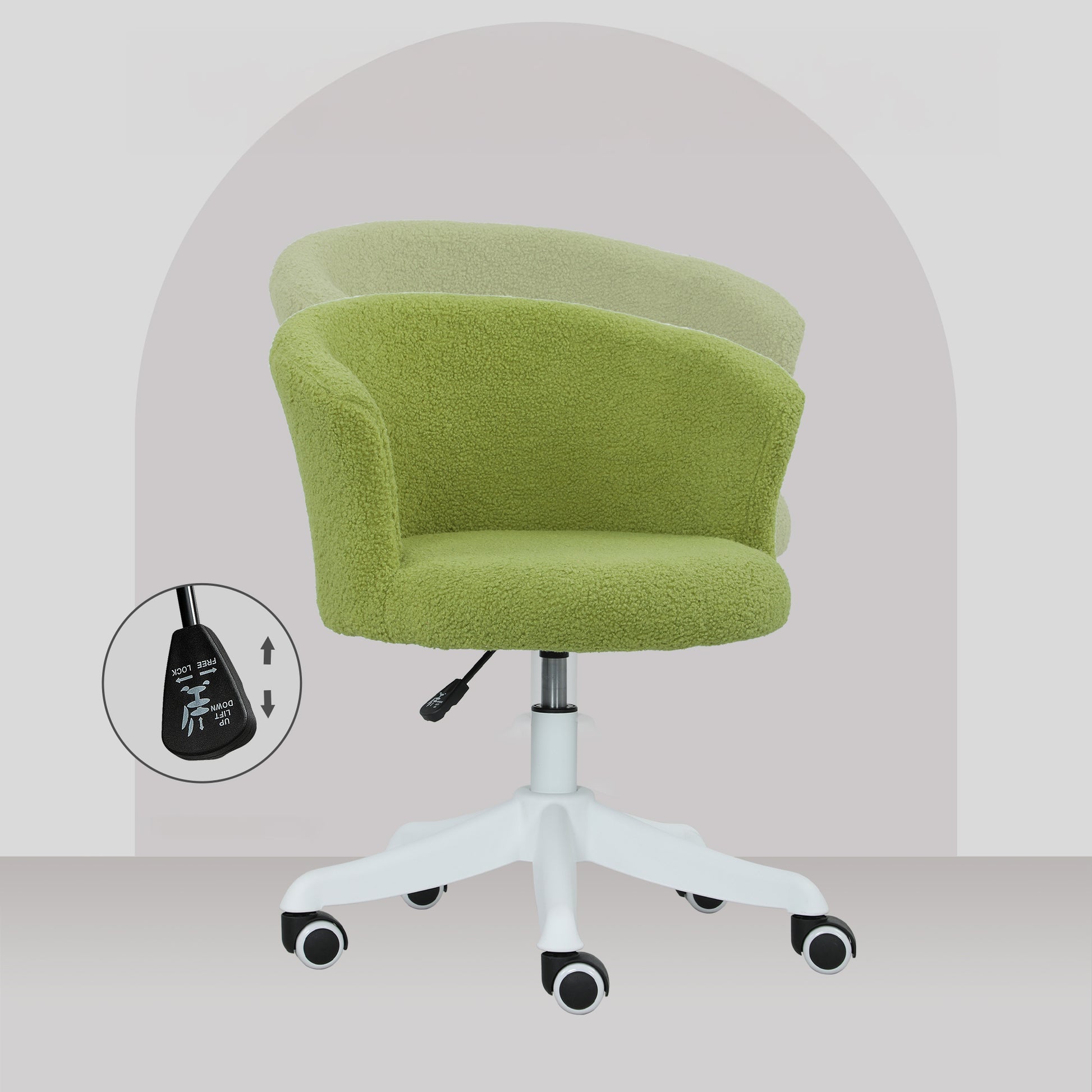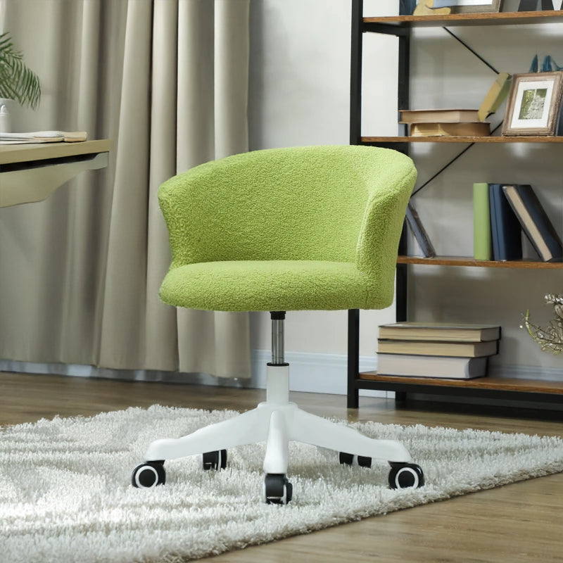 Adjustable Height Swivel Office Chair with Teddy Fleece Upholstery, Light Green