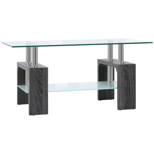 Modern Rectangular Coffee Table with Tempered Glass - Grey