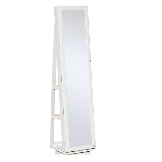 360° Swivel Jewelry Armoire with Lockable Mirror Cabinet, White