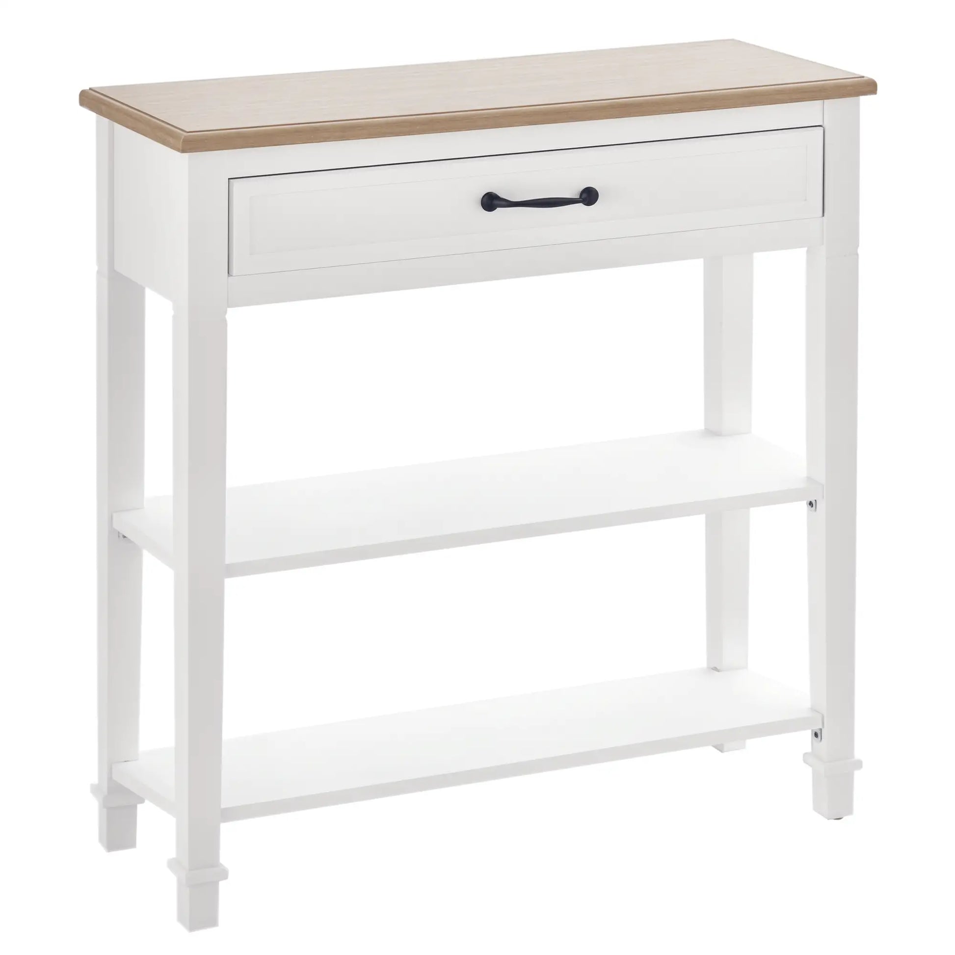 - Three-Level Organization: Pull-out drawer, dual open shelves, and spacious tabletop provide comprehensive storage for entryway essentials