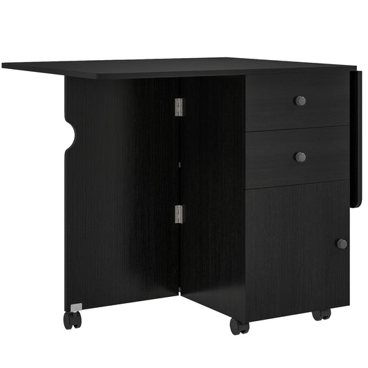 Extendable Drop Leaf Dining Table with Storage - Black Wood Grain