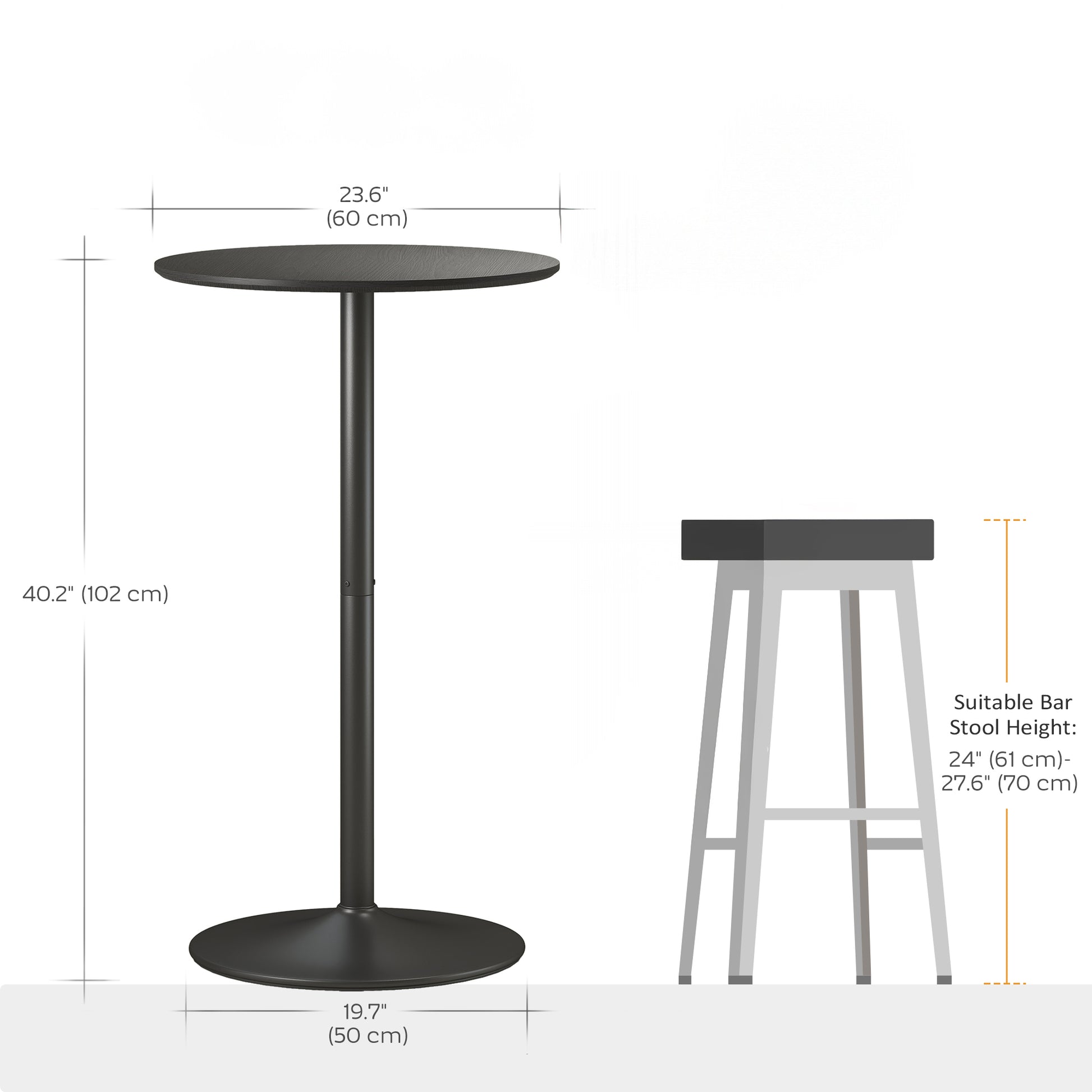 Bar Height Round Table with Wood Veneer Top for 2 People, Black